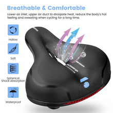 - ERGONOMIC DESIGN: Our bike seat is padded by thicken widened high-density memory foam, soft and comfortable. Bike saddle cushion surface is non-slip wear-resistant leather. Airflow vent in middle accommodates circulation of buttock and speed up the air flowing and heat-dissipation, keep your buttock a long time cooling and dry.
