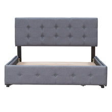 Upholstered Platform Bed with Classic Headboard and 4 Drawers No Box Spring Needed Linen Fabric Queen Size Dark gray