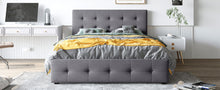 This beautiful Upholstered Platform Bed features button tufted upholstered headboard that adds a contemporary chic look to your bedroom and filled in thick foam to add extra comfort.Sturdy wood frame construction and a wooden slat system to add extra stability and safety. Despite its size and solidity, this piece comes with hardware and instructions included and anyone can assemble it, without a problem. The upholstered platform bed with four drawers can easily be pulled in and out for maximum storage space, perfect for organizing anything from clothes and bed linens to toys and games.