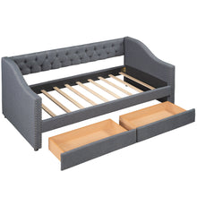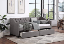 Upholstered Twin Size daybed with Two Drawers Wood Slat Support Gray
