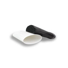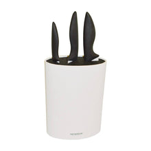 This modern knife block is a versatile and stylish addition to any kitchen. Made of high-quality plastic, its sleek design combines functionality with contemporary aesthetics. The knife block is presented in a minimalist white and black color scheme, with the black representing the dense bristle insert that safely holds the knives in place.