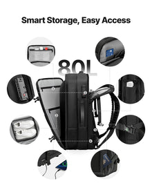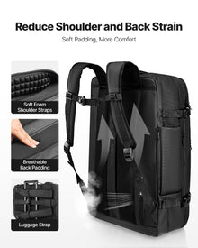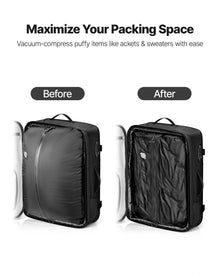 Effortless Vacuum Compression: Equipped with a mini vacuum pump and a 1.77 in expansion layer, this vacuum travel backpack compresses bulky clothes with ease. Boosts capacity up to 80L-ideal for long hikes, international travel, or extended business trips