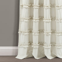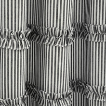 This Vintage Stripe Yarn Dyed Window Curtain Panel Set will also fit into additional home decor themes, such as coastal, boho or nautical. Neutral hues and a simple vertical pin stripe pattern, combined with the textured rows of ruffles, create a look that makes it easy to match nearly any space.