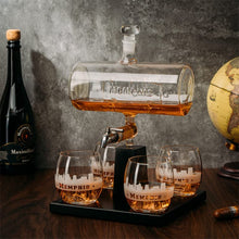 - The Memphis Wine & Whiskey Decanter set is a combination of form and function, designed to enhance your home bar experience. A wooden mahogany base with curved glass panels supports a cylindrical whiskey decanter with the Memphis Skyline and four matching 10 ounce whiskey glasses, bringing both elegance and convenience to serving spirits at home. A classic design for a Memphis native or wine and spirits enthusiast that makes it perfect for display on any bar cart.