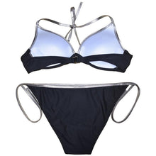 - UNIQUE DESIGN- Classic wireless triangle bikini set, fashion style, white. Non-removable molded bra cup, elastic adjustable lace up back , High leg cut v bottom, silver sequin contrast color-block swim-wear