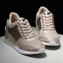 Women Height Increasing Walking Jogging Sneakers Gold Silver Sport Running Women's Lightweight Casual Everyday Walking Fashion High Heels Comfortable Sneakers