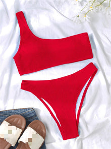 Women One-Shoulder Bikini Swimsuit Women Push Up Swimwear Women's Bathing Suit Comfortable Bikini Ribbed Two Piece Swimsuit Bikini Set Summer Bathing Suit Beach Wear Swimming Suit