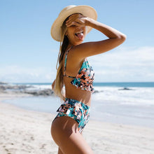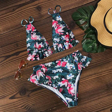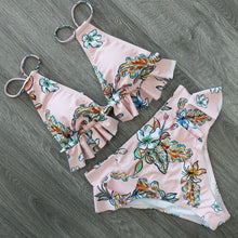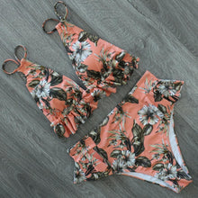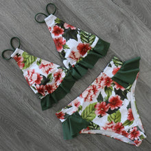 Women Summer High Waist Ruffle Bikini Set Swimwear Women Lady Floral Female Push Up Swimsuit Summer Beach Wear Bikini Pure Color Bikini Charming Ruffled Bra And Bottom Swimsuits