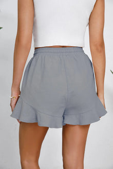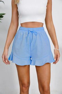 Women's cotton and linen shorts with ruffled edges and drawstring casual pants for women