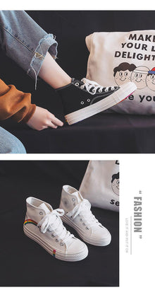 Women's Fashion Vulcanized Sneakers New Rainbow Retro Canvas Shoes Flat Fashion Comfortable Womens Canvas Shoes Sneakers Low Top Tennis Sneakers
