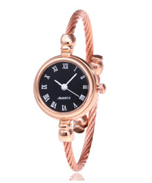 Women's Watches Bracelet Style Opening Simple Retro Art Fashion Watches Women's Fashion Quartz Watch Relogio Feminino(Rose gold belt)