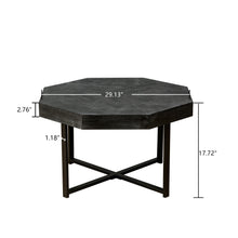 Wooden octagonal retro patchwork craft 30 inch wooden tabletop cross metal leg coffee table (Antique Black)