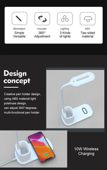10W QI Quick Wireless Charging LED Desk Lamp Flexible Touch Dimmable Eye Protect Reading Table Light Bedroom Office Table Lamp Decorative Table Lamp Cute Study Lamps for Bedroom Décor