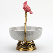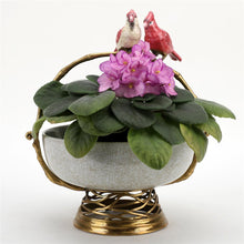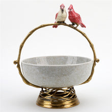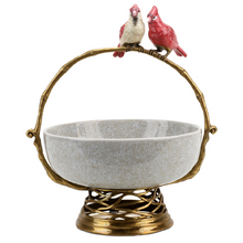 11.5"H Love Birds And Bowl With Bronze Ormolu Handle