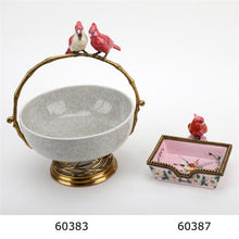 Love Birds And Bowl With Bronze Ormolu HandleDimension: 9.75x8x11.5Pattern: Robin Morning