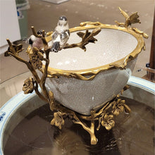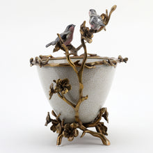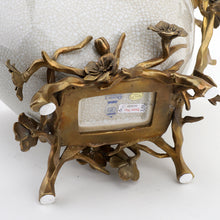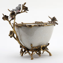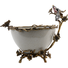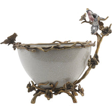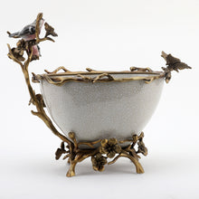 11.5"H Porcelain Basin With Bronze Ormolu - White Crackle