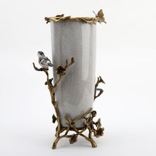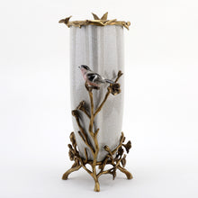 16.5"H Porcelain Vase with Bronze Ormolu - White Crackle
