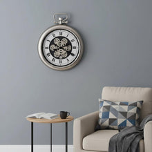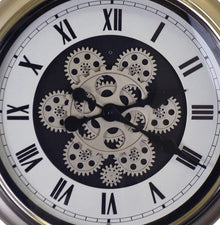 16" Champagne White And Black Metal Skeleton Exposed Gear Pocket Watch Wall Clock