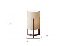 17" Brown Solid Wood Bedside Table Lamp With Natural Cylinder Shade