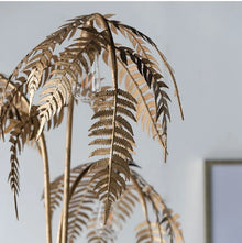 Floor lamp with palm tree theme. It is made of metal with golden finish. Ideal as additional source of light in any interior as needed.