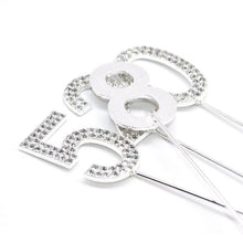 1Pc Glitter Alloy Rhinestone Number Cake Toppers Pieces Silver Glitter Number Cake Toppers Double Sided Twinkle Happy Birthday Cake Topper Cupcake Toppers For Wedding Baby Shower Birthday Decoration Wedding Gold Silver Digital Cakes Dessert Decor