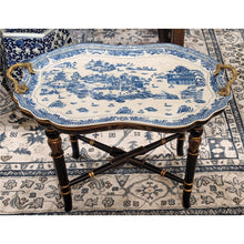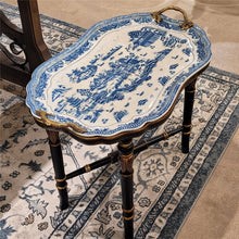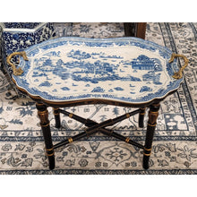 20"H Tray with Wood Stand with Porcelain Top - Blue Willow