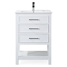 24'' Aruzza White Narrow Bathroom Vanity with 2 Drawers and Open Shelf