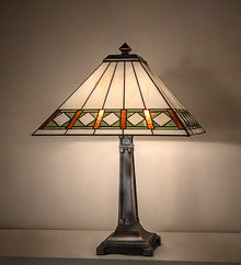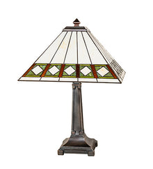 Simple clean lines and geometric shapes are the hallmark of the Mission style. This sleek Bisque Beige stained glass shade features a simple, elegant diamond pattern in Beige accented with...