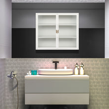 27.56"Glass Doors Modern Two-door Wall Cabinet with Featuring Three-tier White