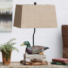 CL1600, 27" MALLARD DECOY LAMP Perfect for the hunting enthusiast, this rustic resin mallard duck lamp with a linen shade brings lakeside style to any room. Weathered Painted Finish Bring...