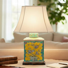 [19Lx15Wx29H]Rectangular Lidded Tea Jar Lamp-Green Yellow Flower Bird[111-19-St-Be]