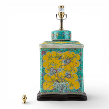 29"H Rectangular Lidded Tea Jar Lamp-Green Yellow Flower Bird