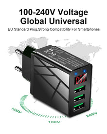 3 Ports Black USB Charger EU US Plug LED Display 3.1A Fast Charging Smart Mobile Phone Charger