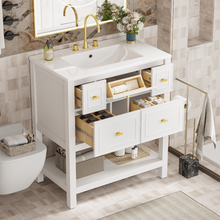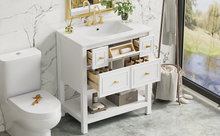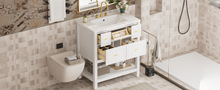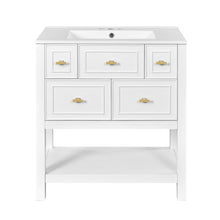 30'' Bathroom Vanity with Ceramic Sink Combo, Free Standing Single Vanity Set with 5 Drawers, Solid Wood Frame Bathroom Storage Cabinet, White