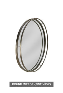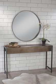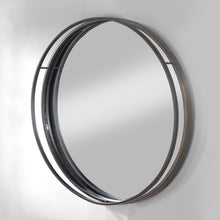 Contemporary mirror features a black, double edged metal frame accent. It is perfect to use as a mirror in a bathroom, bedroom, living room and entryway. The 31" round diameter makes it perfect for use as an accent or wall art.