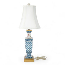 Porcelain Lamp With Multicolor Florals In Blue Lattice - Garden Trellis