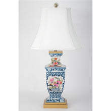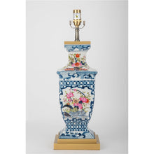 33"H Porcelain Rectangular Lamp With Multicolor Florals In Blue Lattice - Garden Trellis