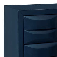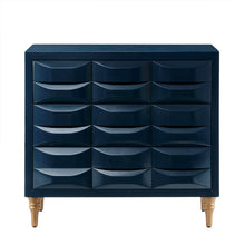 Accent your space with the Madison Park Rubrix 3 Drawer Chest. Expertly designed, this wood chest features three drawers with hidden handles that open up to reveal ample storage spaces. The navy gloss finish of the chest is complemented by the gold metal finish on the legs, creating an exquisite look. Place this three drawer accent chest in your living room to bring the chic look of your decor together. Leg assembly is required. No tools are needed.