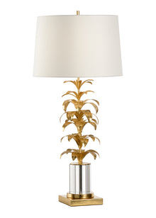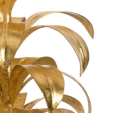 Hand sculpted iron leaf design with antique gold leaf finish, clear crystal column with antique gold leaf mounting Overall Dimensions: 36.5h x 6.5w x 6.5d Materials: Iron/Crystal Finish: Antique Gold Leaf/Clear Overall Height: 36.5...