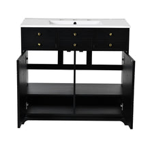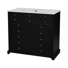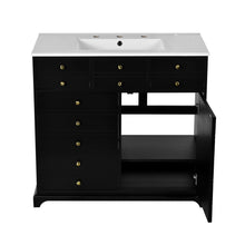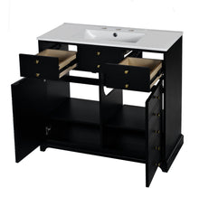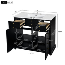 36'' Bathroom Vanity with Ceramic Sink Combo, Solid Wood Frame Bathroom Storage Cabinet, Freestanding Vanity Set with 2 Drawers& Soft Closing Doors, Black