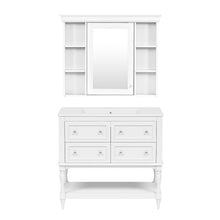 36'' Bathroom Vanity with Medicine Cabinet, Modern Mirror Cabinet with Adjustable Shelf, Bathroom Storage Cabinet with 4 Drawers, Solid Wood Frame Bathroom Storage Cabinet