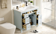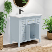 36 inch bathroom vanity with resin sink combination set with 6 drawers and 2 cabinets, storage cabinet vanity set, light blue