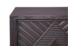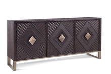 The Allamar Server features contemporary boho styling with three doors and fixed shelving. With its bohemian brown finish, gold metal base, and unique geometric design, it brings a touch of contemporary flair to your space.