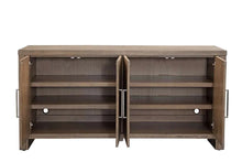 9439-DR-576  |  72x19x36   The McGuire Sideboard blends modern rustic farmhouse design with timeless craftsmanship. Crafted from solid mindi wood in a natural finish. Featuring four doors, two adjustable shelves, and media cord...