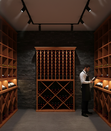 Elevate your home wine cellar with our Foot Wine Cellar, holding up to 220 (750 ml) bottles. Part of the RediCellar collection, this luxury wine storage solution offers elegance and functionality, perfect for growing wine collections. Features individual bottle storage with display rows to showcase labels and versatile diamond bins for various wine and liquor sizes, perfect for home bars. Customize the finish and design to seamlessly fit your space and showcase your bottles in style.