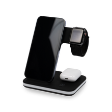 Introducing the ultimate solution to elevate your productivity. Our luxurious 4-in-1 charging station is designed for simultaneous charging of Apple Watch, iPhone, AirPods, and other Qi-enabled devices. With sophisticated style and safety features, it provides optimum charging ability, storage convenience, and ergonomics. It also features a convenient Night-Light with a touch switch on/off button, perfect for your desk or nightstand.