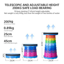 400lbs Capacity Heavy - Duty Folding Stool. Collapsible, Telescoping, Portable. Ideal for Camping & Fishing.