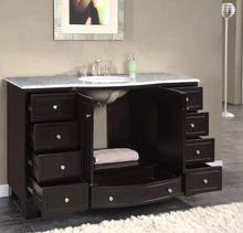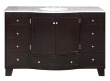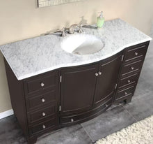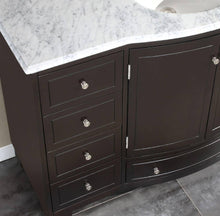 Complete any bathroom with this simple yet elegant single sink vanity, featuring plenty of storage space for you to organize all of your bathroom necessities and accessories. It comes with dark Espresso finish cabinet, eye-catching Brushed Nickel handles, pre-installed white ceramic under mount sink and natural Carrara White marble stone counter top. This high quality transitional bathroom vanity will add just the right amount of class and taste to your newly remodeled bathroom.