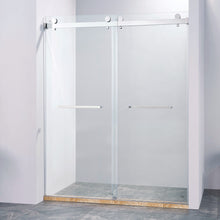 56-60 "wide x 75" high frameless double sliding shower door, 304 stainless steel chrome plated, 8mm thick SGCC tempered transpar