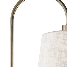 This 65-inch brass tray table floor lamp with off white linen empire shade is a great way to add some brightness to any corner of your home. The lamp pole is made of sturdy metal and features a black and brass coloration that includes a 10-inch round natural wood colored tabletop surface. A fresh and updated take on two classics, this tray table floor lamp offers lots of functionality in a compact footprint. Offering you a combination of lamp and end table together in one, this mighty accent is just what you need beside your sofa, favorite chair, desk, or bed. High quality design makes this a great lamp for not only lighting, but accenting a room with style. 65-inch h x 11-inch w x 18.5-inch d.